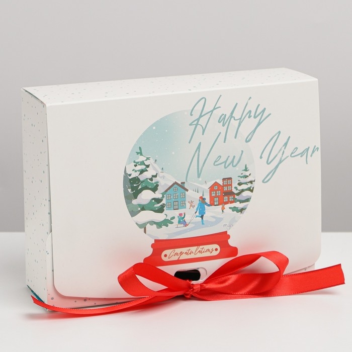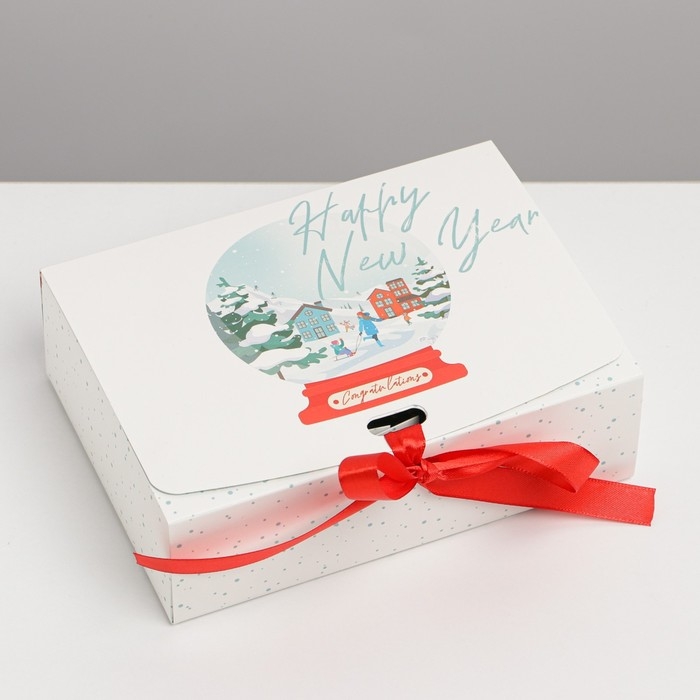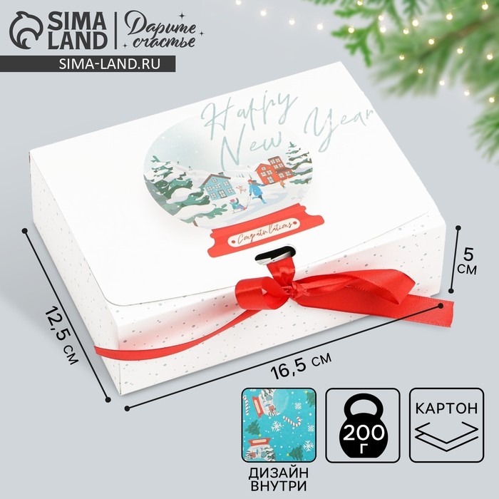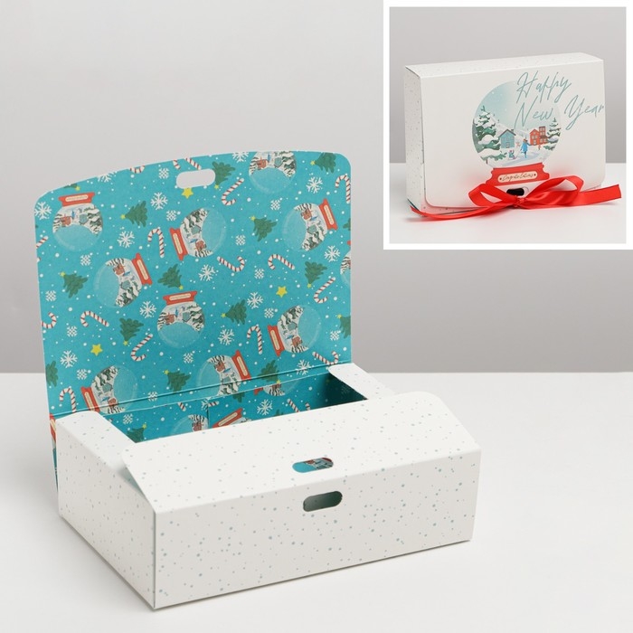 Коробка подарочная новогодняя складная двухсторонняя «Шар со снегом», 16.5 х 12.5 х 5 см, Новый год