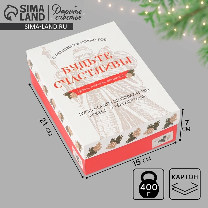 Коробка подарочная новогодняя складная «Будьте счастливы», 21 х 15 х 7 см, Новый год