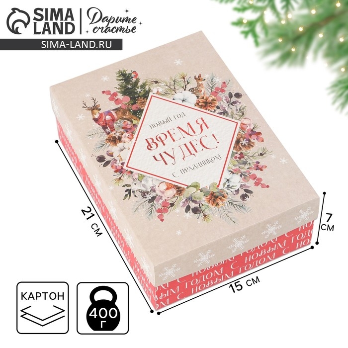 Коробка подарочная новогодняя складная «Акварель новогодняя», 21 х 15 х 7 см, Новый год