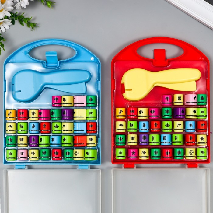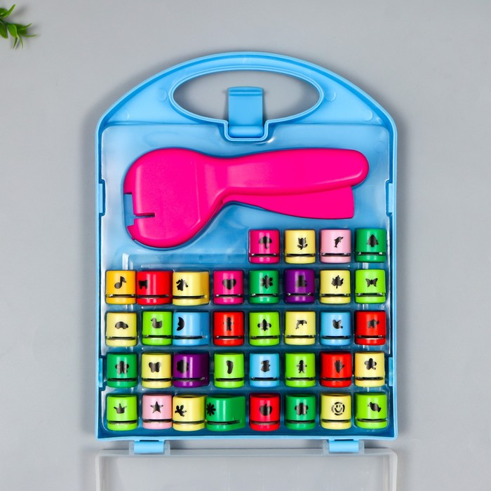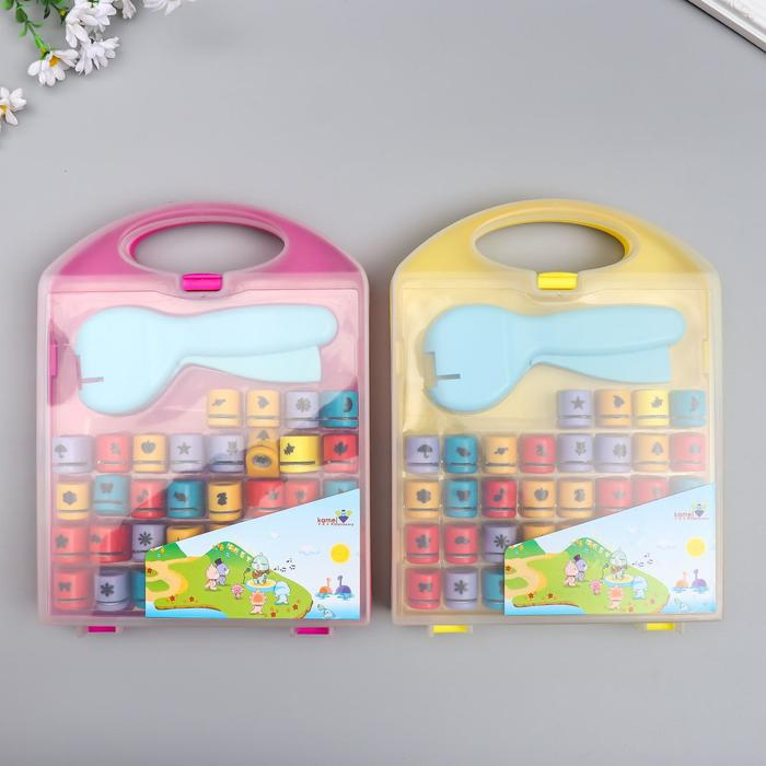 Набор фигурных дыроколов в сундучке, 36 шт с держателем МИКС