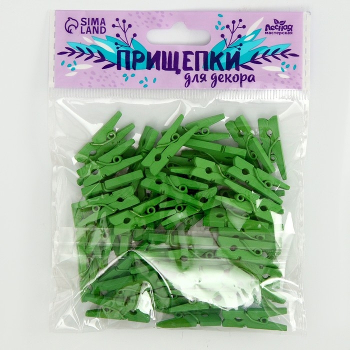 Набор прищепок для декора 50 шт., зелёные — 2,5 см