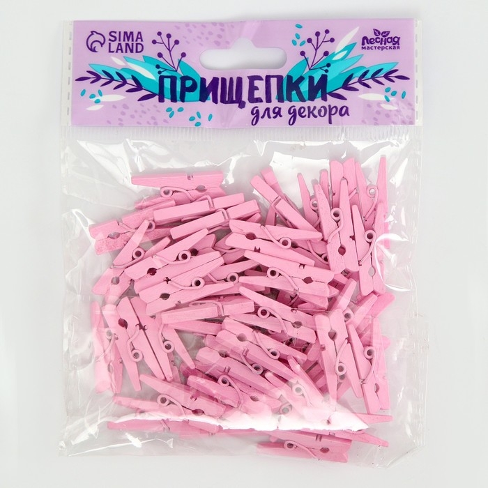 Набор прищепок для декора 50 шт., розовые — 2,5 см