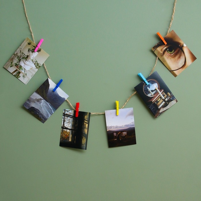 - закрепляйте памятные снимки с помощью прищепок и украшайте ими комнату;