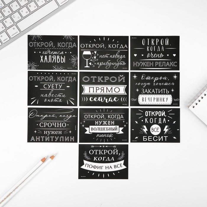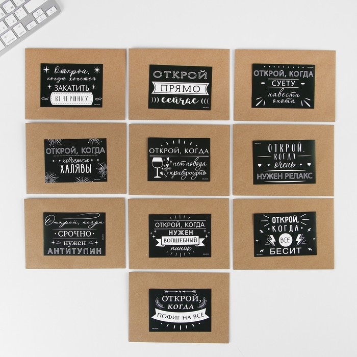 Конверты с наклейками, набор «Открой, когда...», (Приколы), 10шт., 16 х 11,5 см.