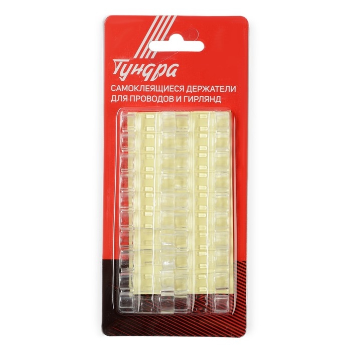 Держатель самоклеящийся для проводов и гирлянд ТУНДРА применяется для легкого, надежного и безопасного крепления разнообразных аксессуаров на вертикальной и горизонтальной поверхностях.
