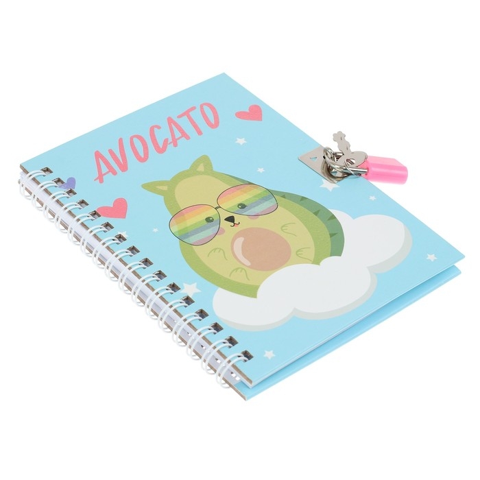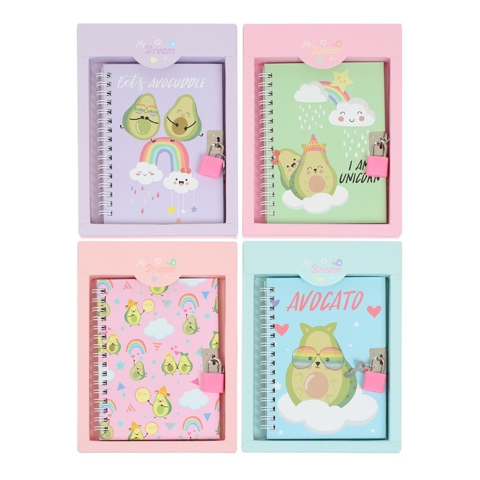 Записная книжка подарочная, формат А6, 45 листов, линия, на замке, на гребне, "Авокадо", МИКС