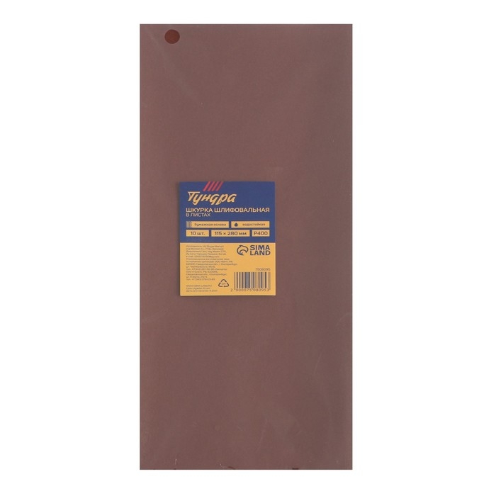 Шкурка шлифовальная в листах ТУНДРА, на бумажной основе водост., 115 х 280, Р400, 10 шт.