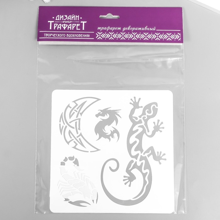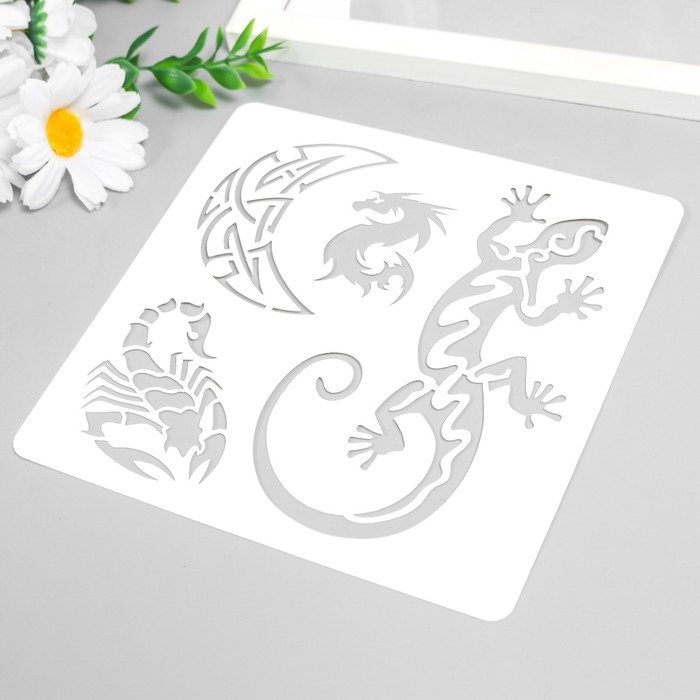 Трафарет для татуировки "Ящерица, дракон" 15х15 см