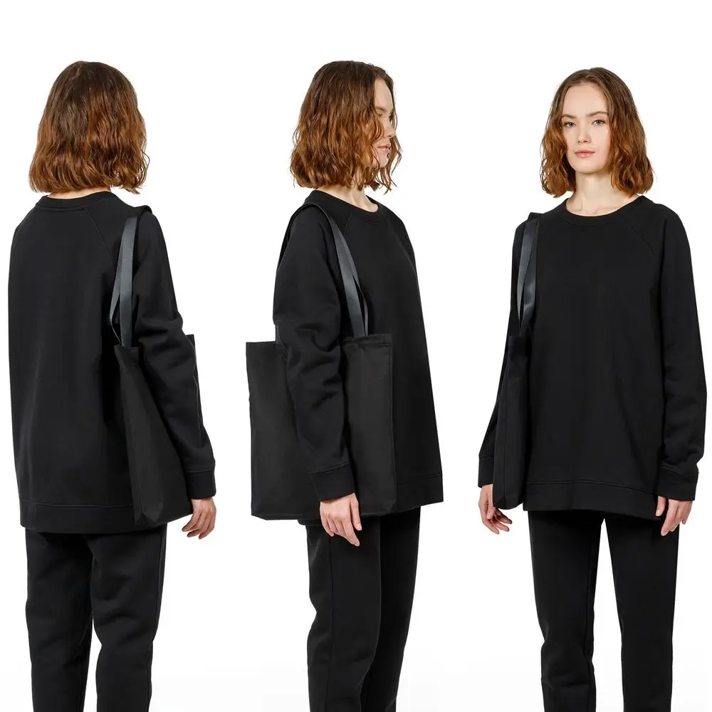 Базовый шопер разработан в рамках единой коллекции одежды и аксессуаров и легко комбинируется с ее элементами. Специально спроектированные лекала и технологии пошива открывают простор для любых вариантов кастомизации и нанесения изображений. На видимой части изделий нет лейблов с айдентикой бренда, а название бренда с уходника легко удалить.