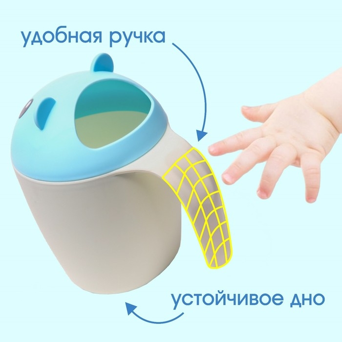 Ковш пластиковый для купания и мытья головы, детский банный ковшик «Мышка», 500 мл., с леечкой, цвет голубой
