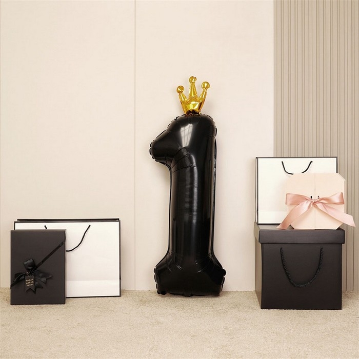 Шар фольгированный 40" «Цифра 1 с короной», цвет чёрный