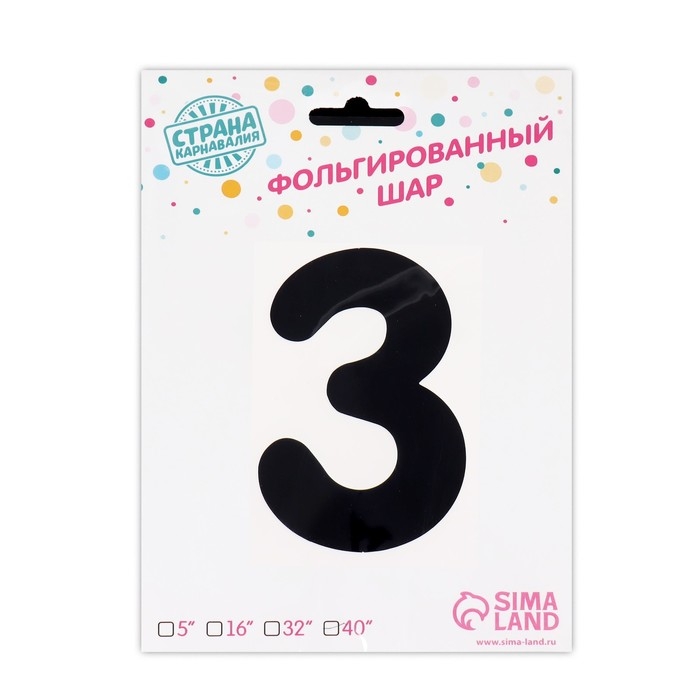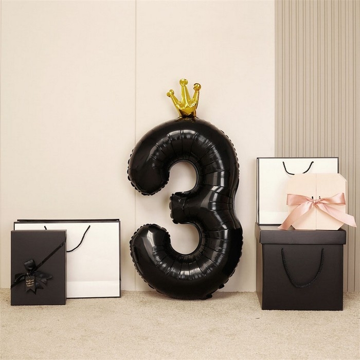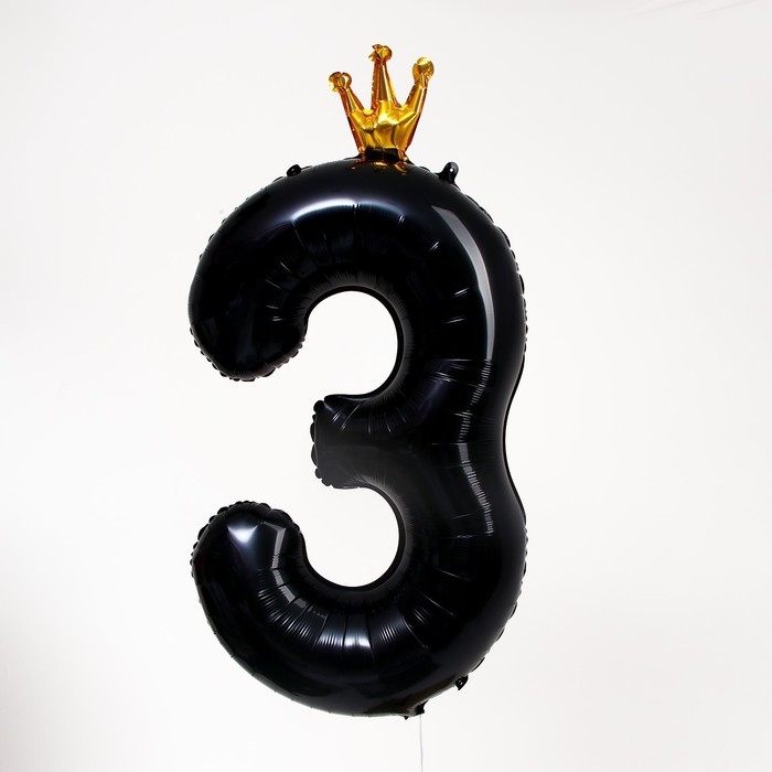 Шар фольгированный 40" «Цифра 3 с короной», цвет чёрный