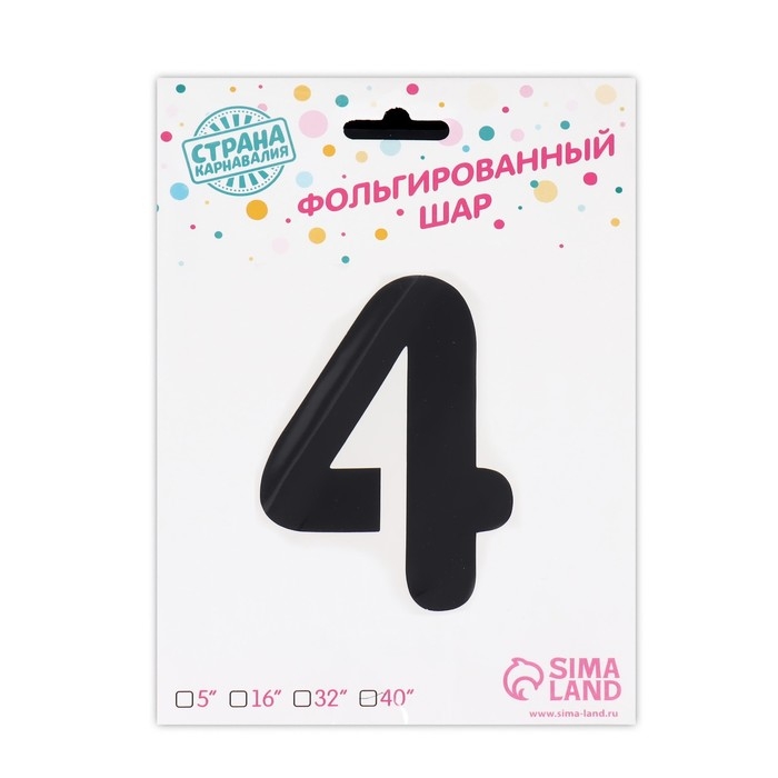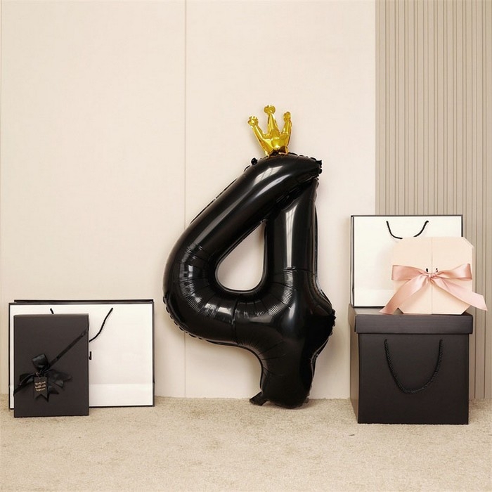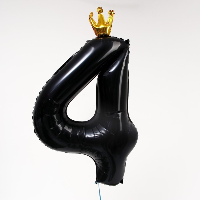 Шар фольгированный 40" «Цифра 4 с короной», цвет чёрный