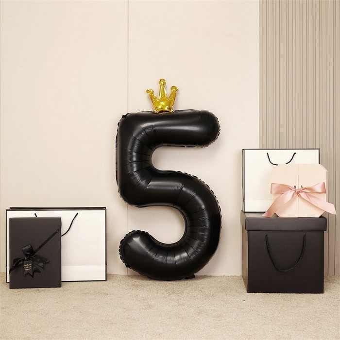 Шар фольгированный 40" «Цифра 5 с короной», цвет чёрный