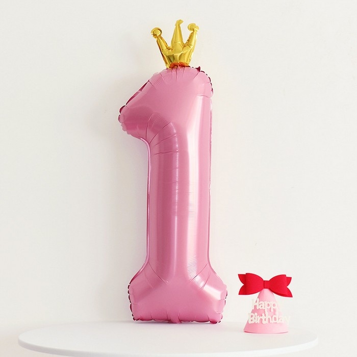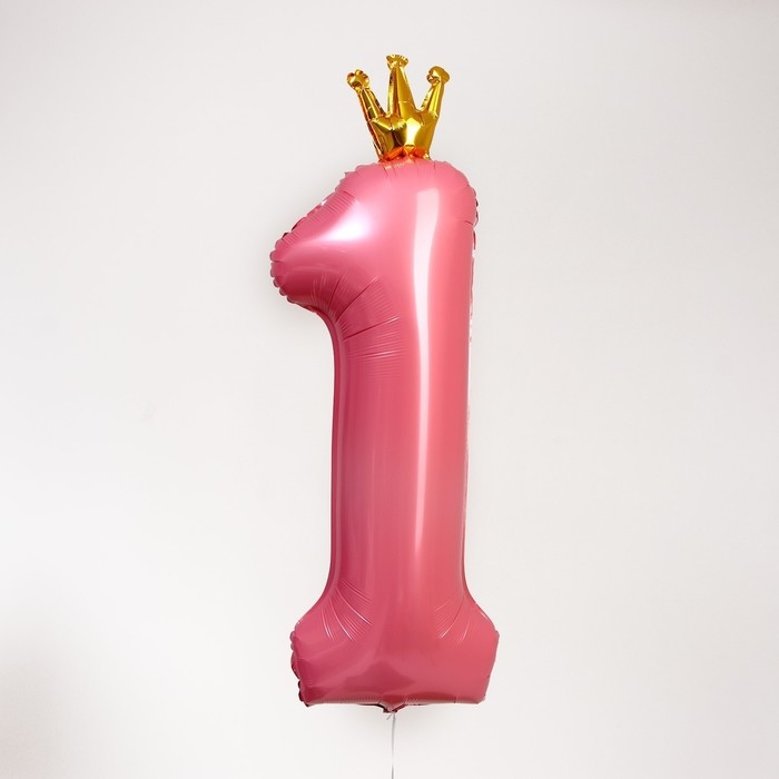 Шар фольгированный 40" «Цифра 1 с короной», цвет розовый