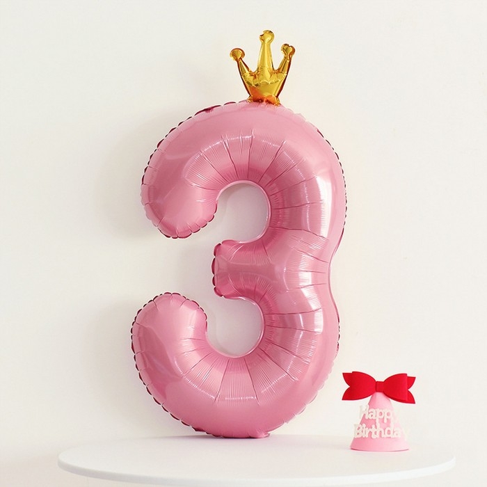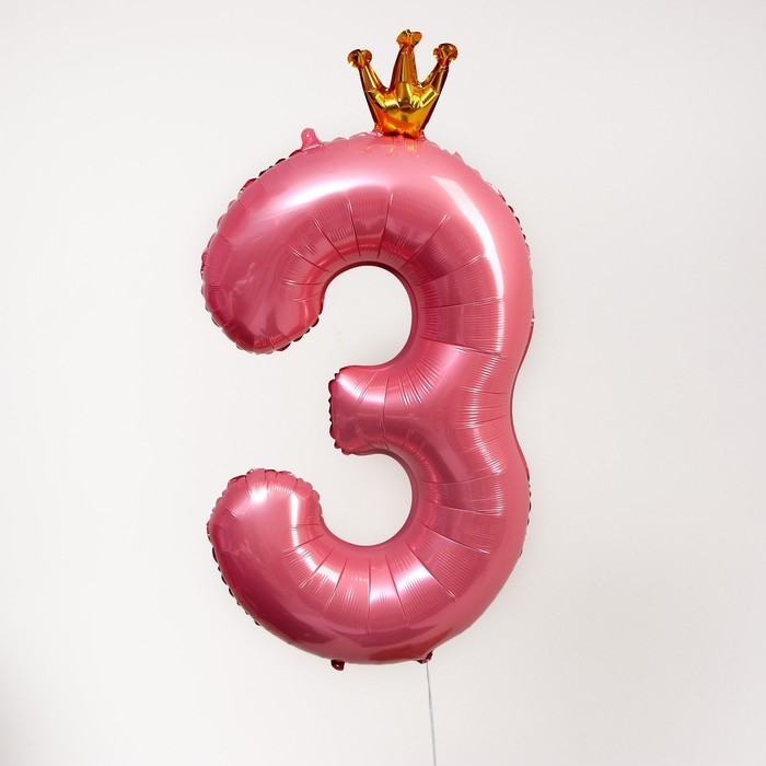 Шар фольгированный 40" «Цифра 3 с короной», цвет розовый