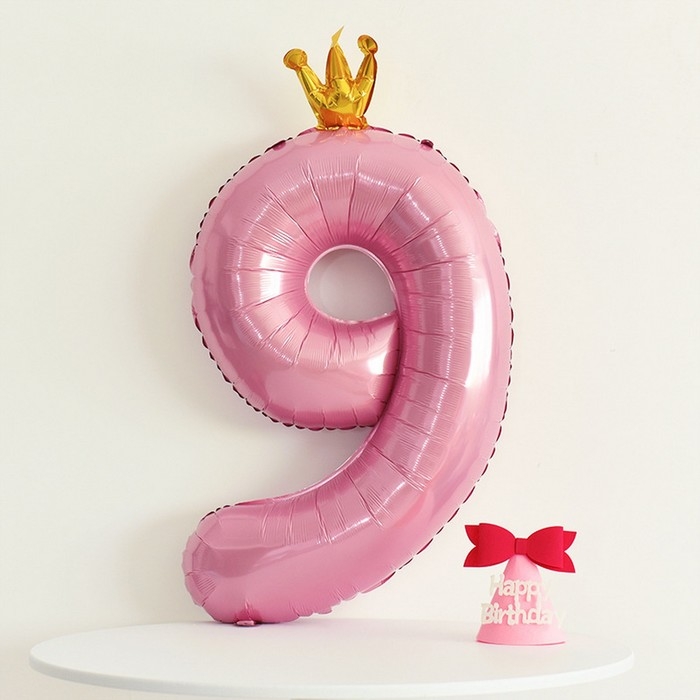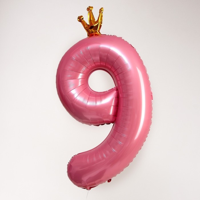 Шар фольгированный 40" «Цифра 9 с короной», цвет розовый