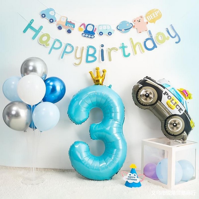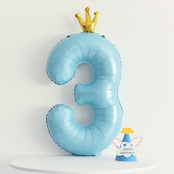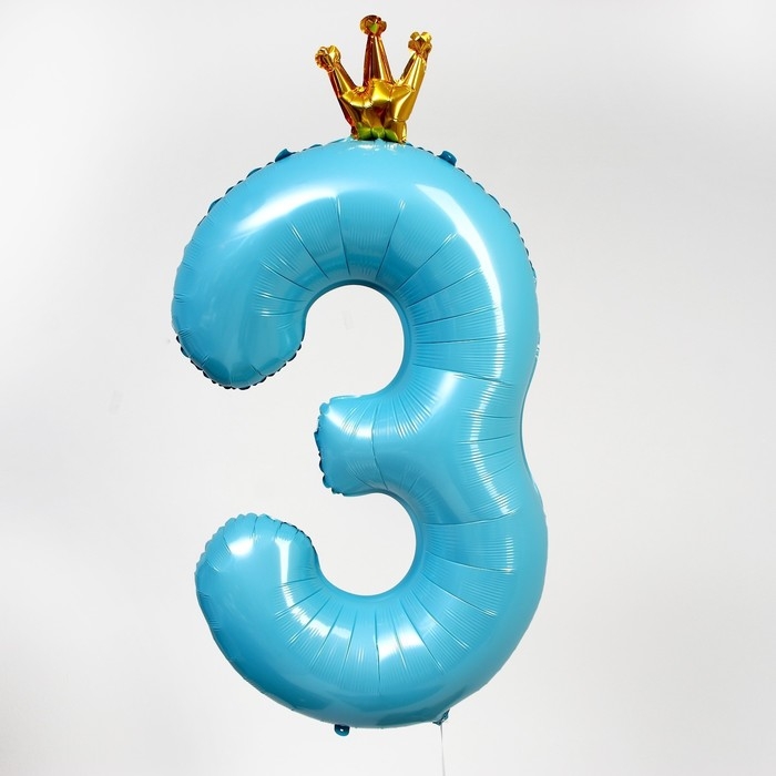 Шар фольгированный 40" «Цифра 3 с короной», цвет голубой