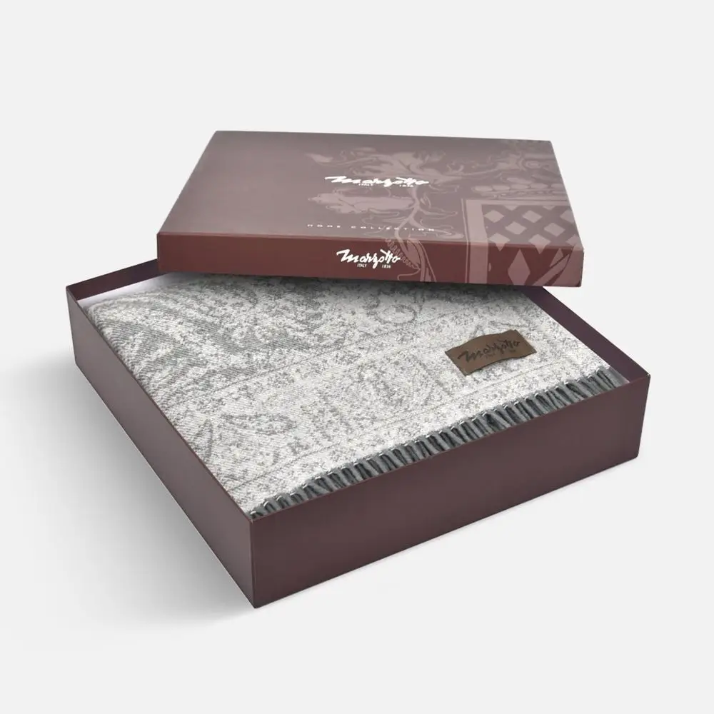 Элегантный плед Magnolia — идеальный подарок дорогому человеку или коллеге. Причудливый восточный узор смягчается неброской цветовой гаммой, а длинная бахрома логичным образом дополняет его роскошное винтажное настроение.