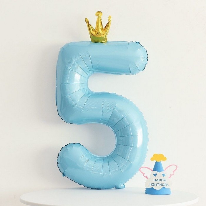 Шар фольгированный 40" «Цифра 5 с короной», цвет голубой
