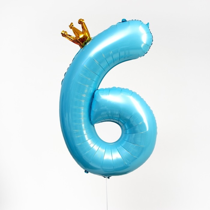 Шар фольгированный 40" «Цифра 6 с короной», цвет голубой