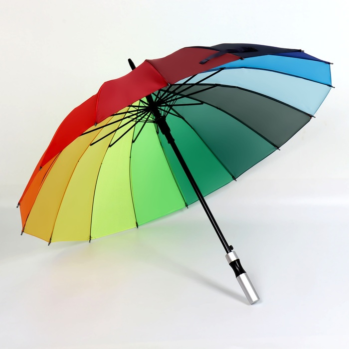 Зонт - трость полуавтоматический «Радужное настроение», эпонж, 16 спиц, R = 48 см, разноцветный