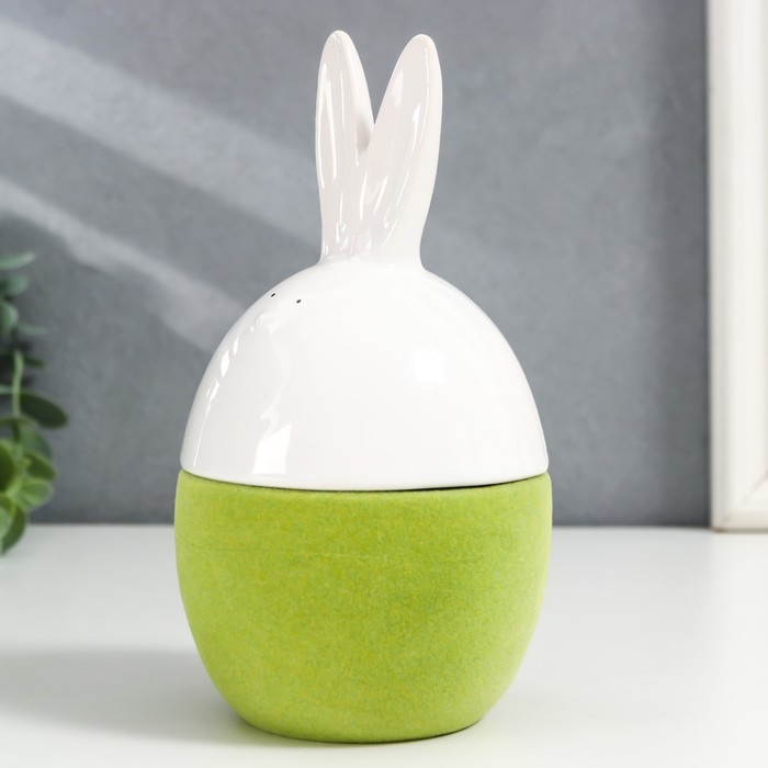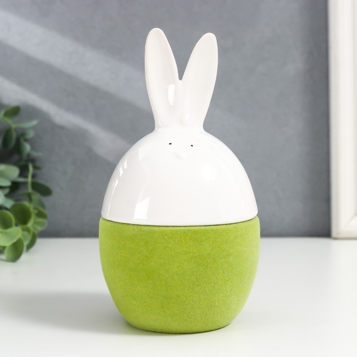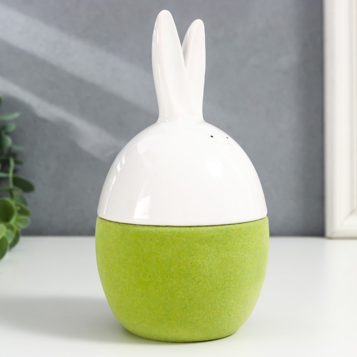 Сувенир керамика "Кролик-яйцо" зелёный флок 15,8х8,5х8,5 см