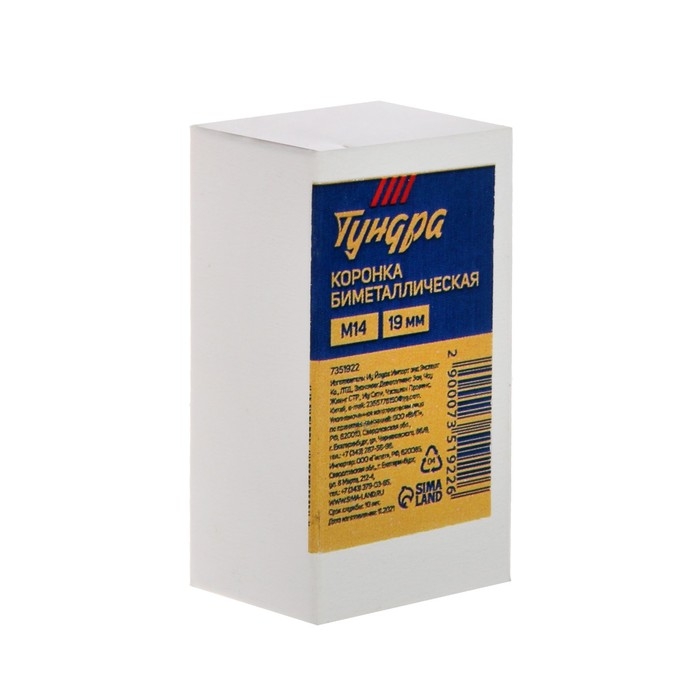 Коронка биметаллическая ТУНДРА, 19 мм, M14