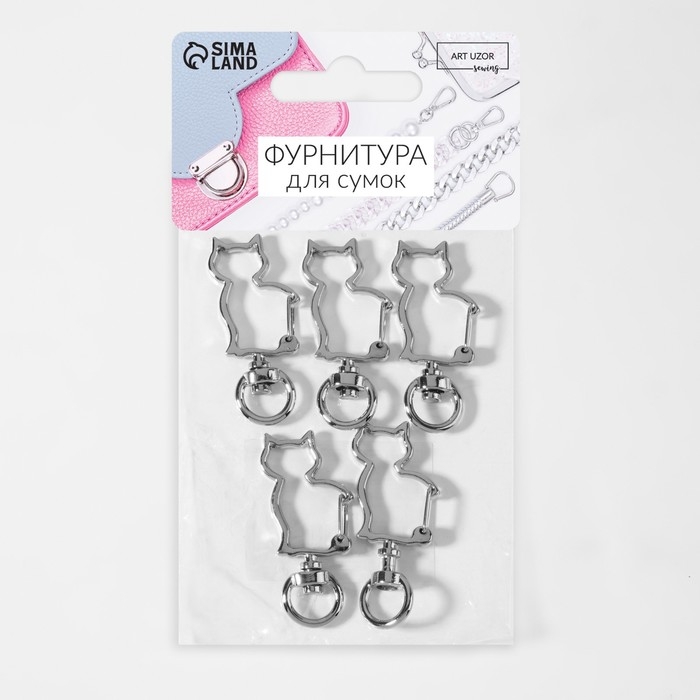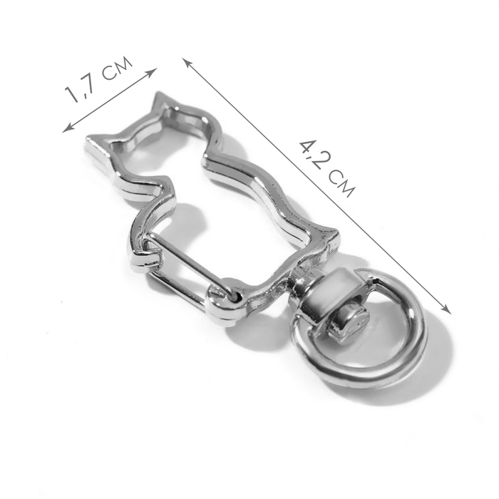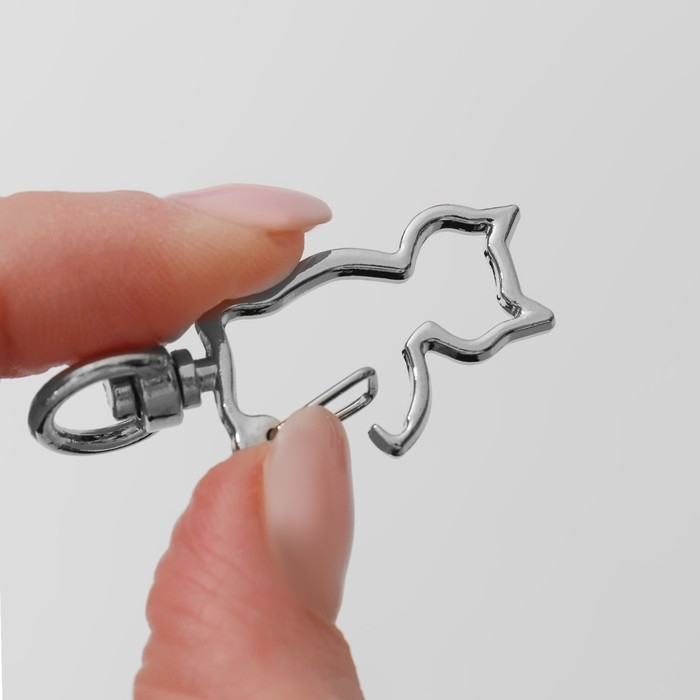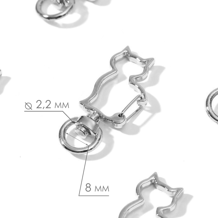 Карабин металлический «Кошка», 42 × 17 мм / 8 × 2,2 мм, 5 шт, цвет серебряный