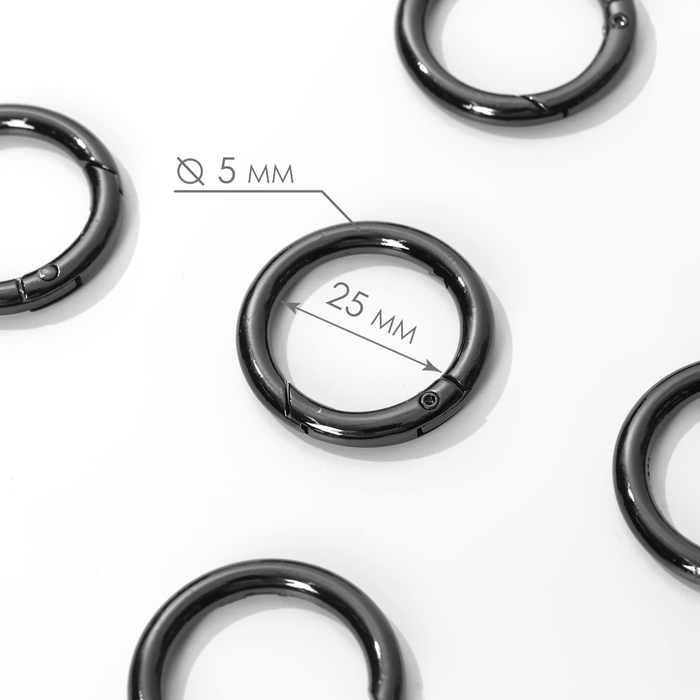 Кольцо-карабин, d = 25/35 мм, толщина - 5 мм, 5 шт, цвет чёрный никель