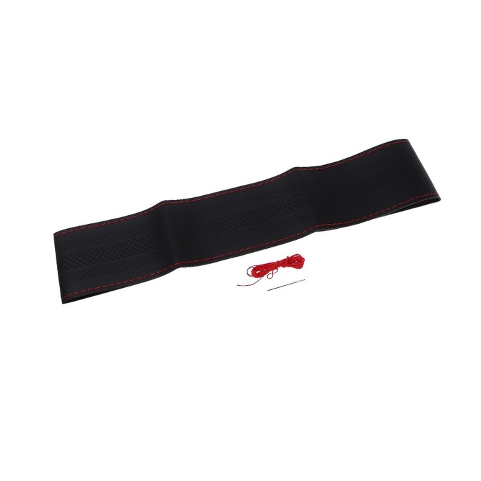 Оплетка на руль TORSO, 38 см, искусственная кожа, узор, красная нить