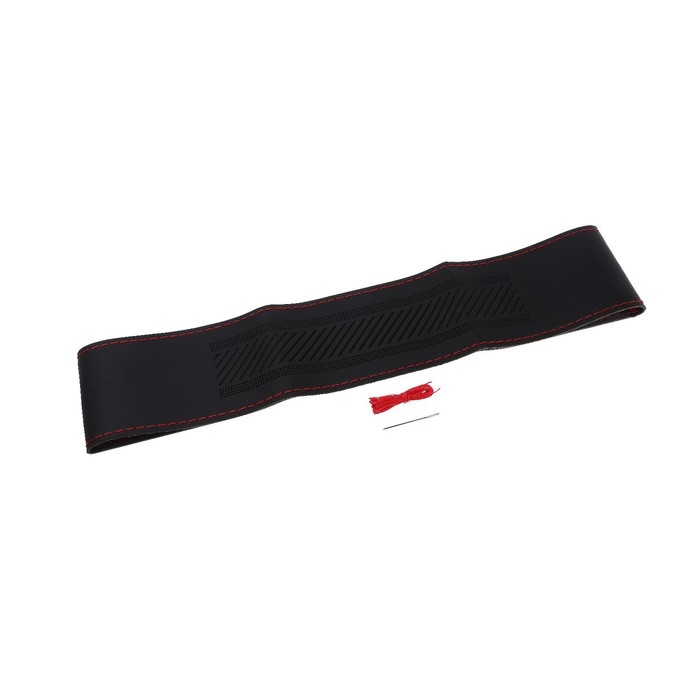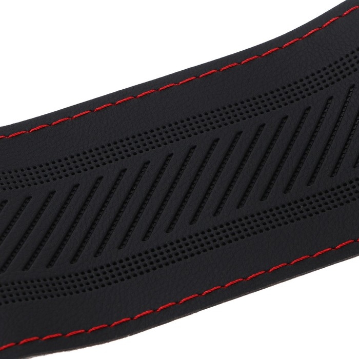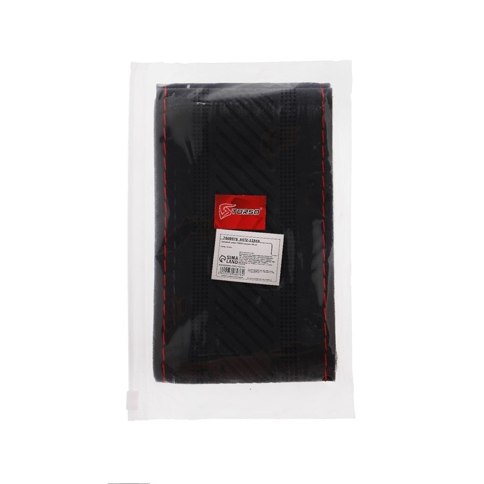 Оплетка на руль TORSO, кожа PU, перфорация, размер 38 см, красная строчка, черный