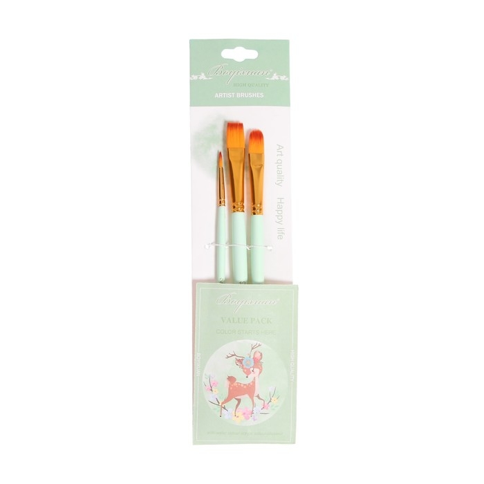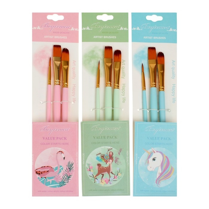 Набор кистей синтетика 3 штуки (№2,10,12), в блистере, МИКС