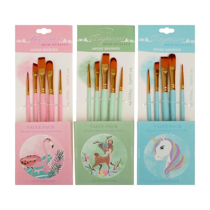 Набор кистей синтетика 5 штук (№2,4,8,10,6) в блистере, МИКС