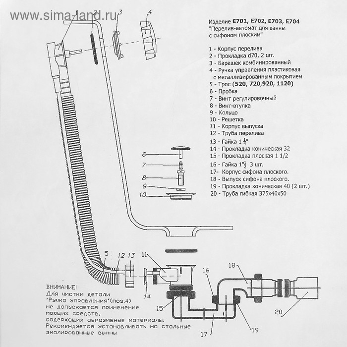 Сифон для ванны "АНИ Пласт" Варяг С6250, регулируемый, 1 1/2" x 40, с выпуском и переливом