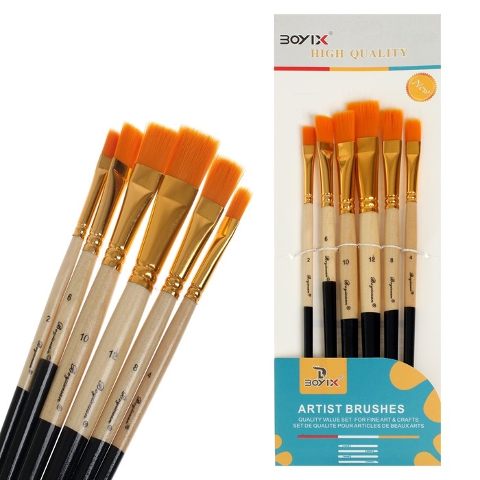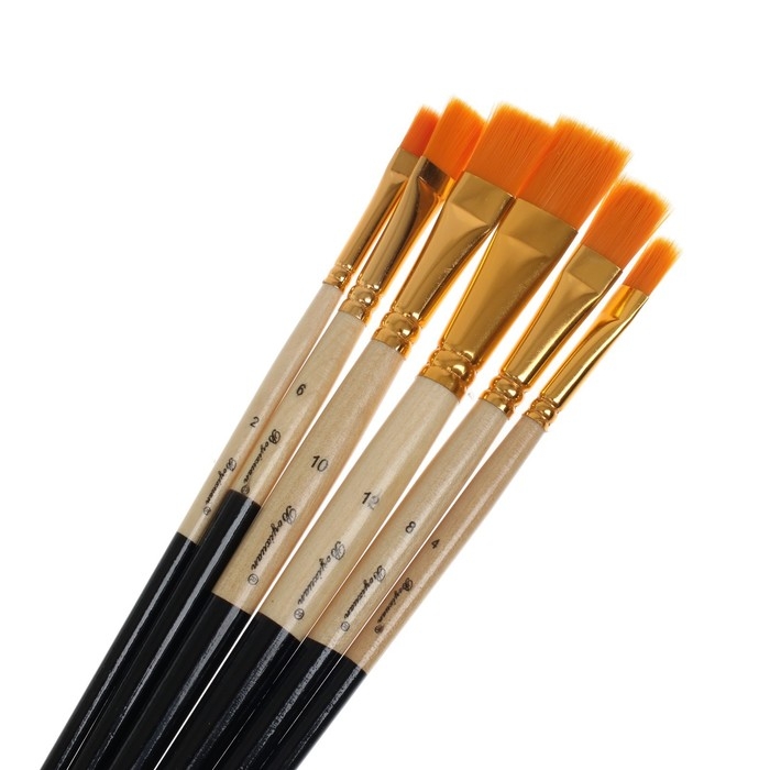 Набор кистей синтетика, 6 штук (№2,4,6,8,10,12), плоские, прямые, в блистере