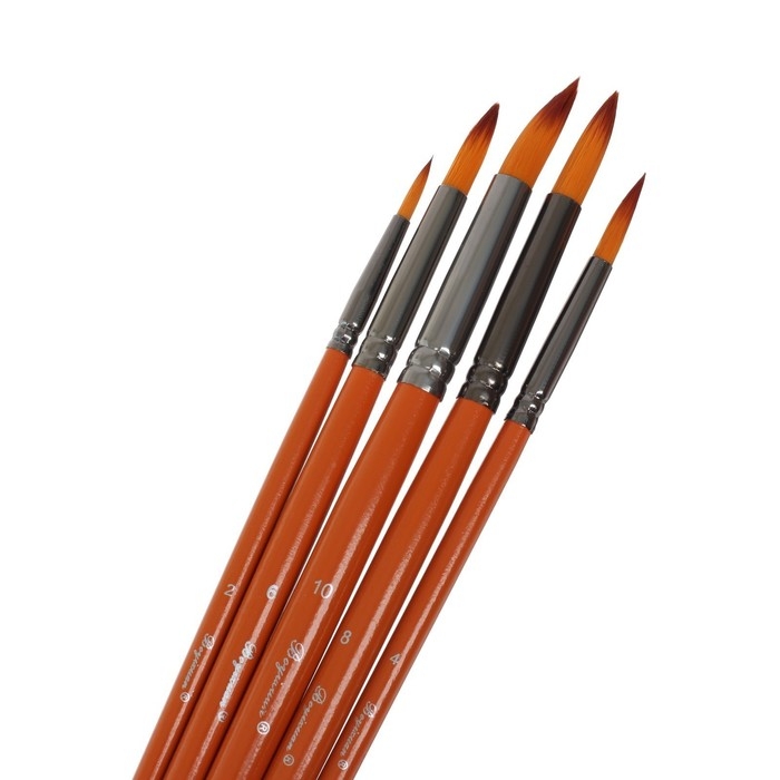 Набор кистей синтетика, 5 штук (№2,4,6,8,10), круглые, в блистере