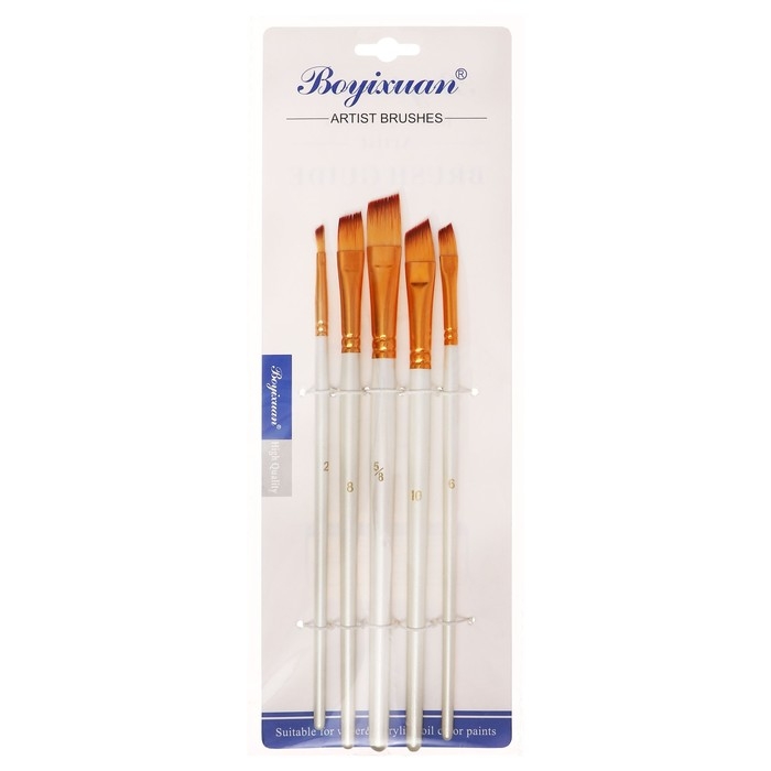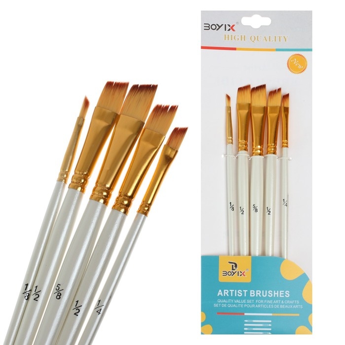 Набор кистей синтетика, 5 штук (№1/8,3/8,5/8,1/2,1/4), плоские, скошенные, в блистере