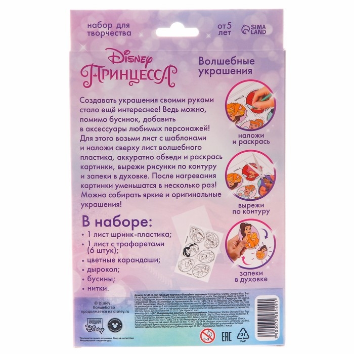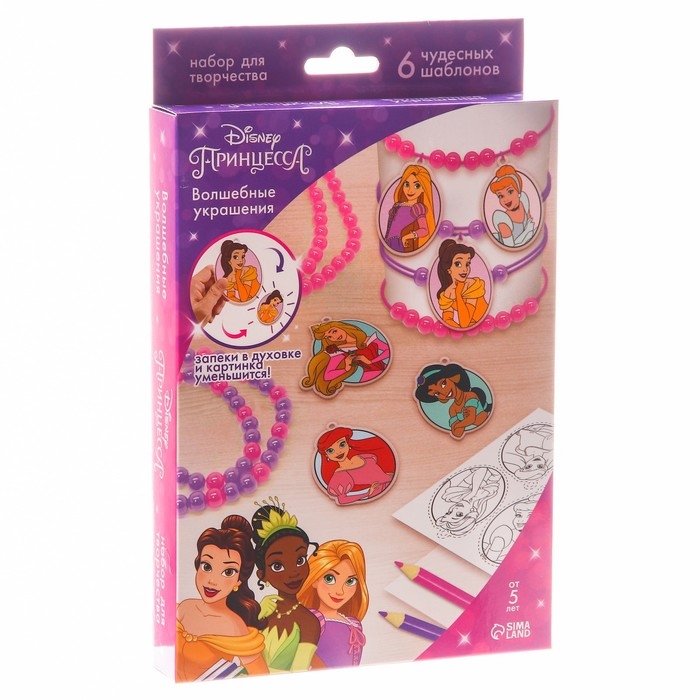 Набор для творчества «Создай украшения. Принцессы», сделай шармы своими руками, с трафаретами, с цепочками, 6+