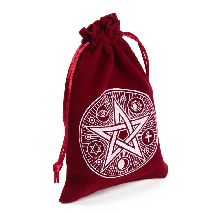 Мешочек для Таро, на Хэллоуин «Пентаграмма», бархатный, бордовый, 12х18 см