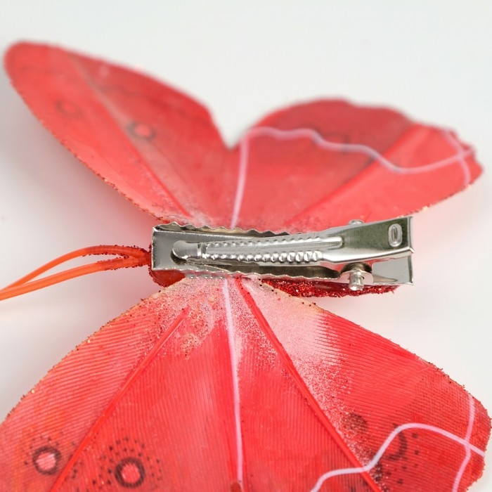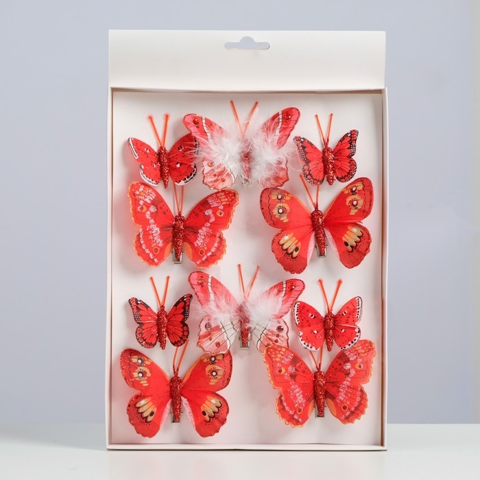 Бабочки для декора и флористики, на прищепке, пластиковые, красные, микс, 5 см и 8 см