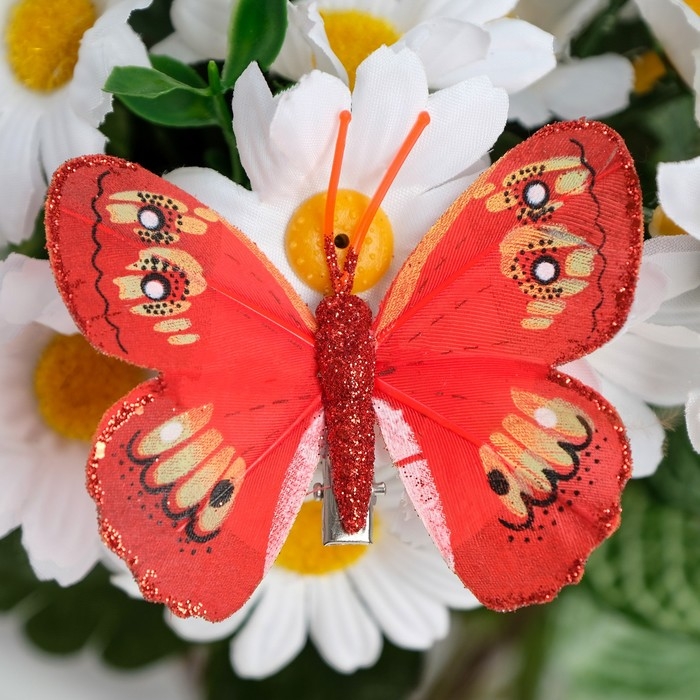 Бабочка для декора и флористики, на прищепке, пластиковая, микс, 1 шт., 7,5 х 7 х 1 см
