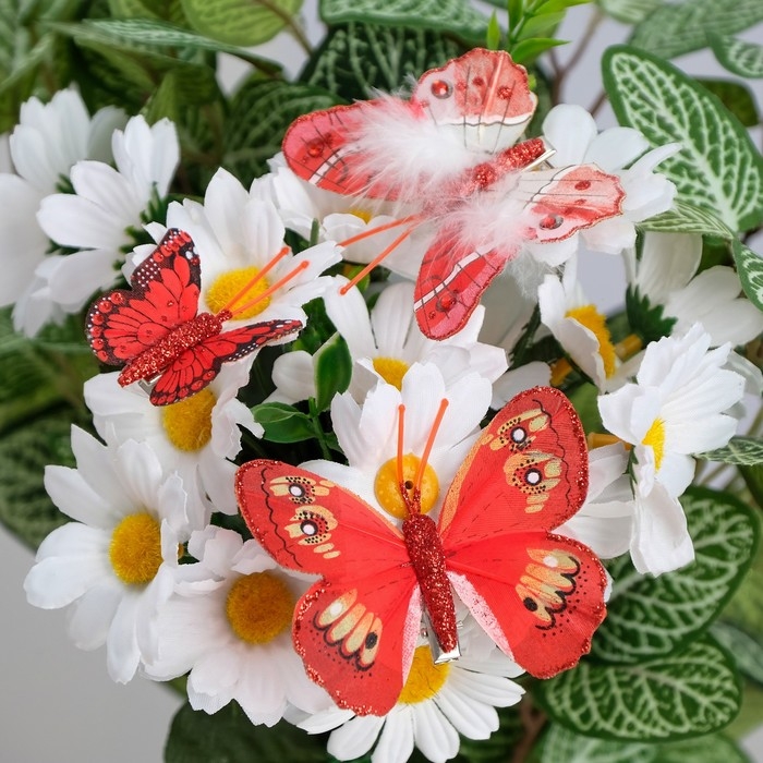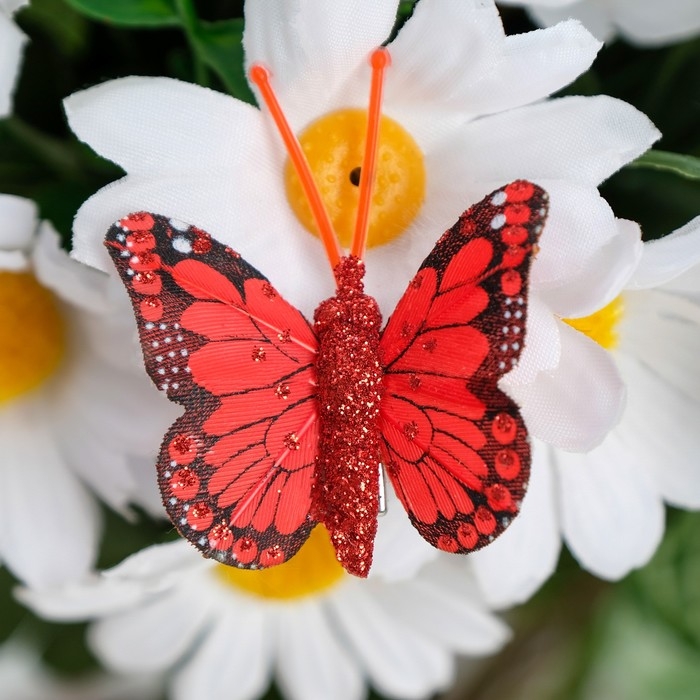 Бабочка для декора и флористики, на прищепке, пластиковая, микс, 1 шт., 5 см и 8 см