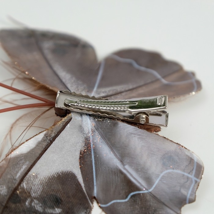 Бабочка для декора и флористики, на прищепке, пластиковая, белые, 1 шт., 7,5 х 6 х 1 см