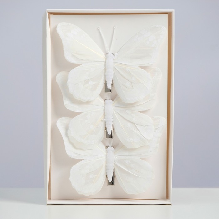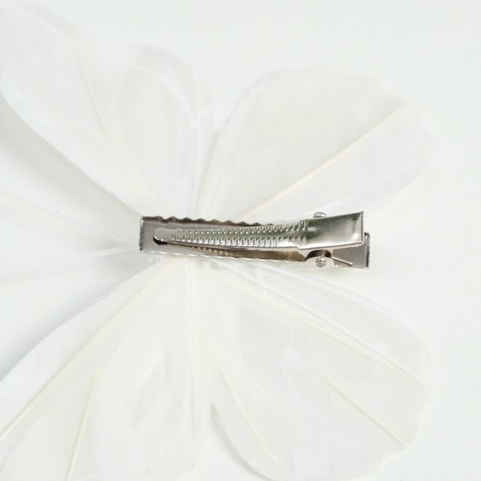 Бабочка для декора и флористики, на прищепке, пластиковая, белая, 1 шт., 12 см