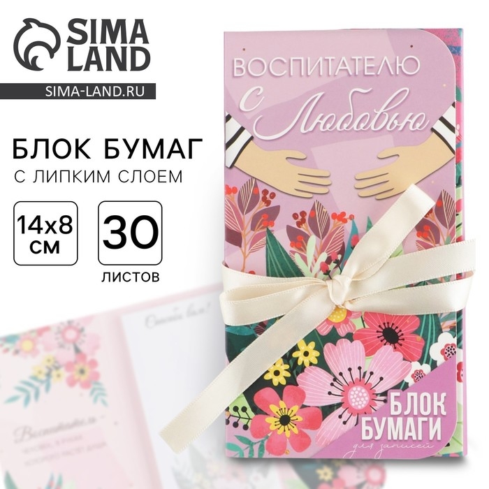 Блок бумаг с липким слоем «Воспитателю с любовью» 40 листов
