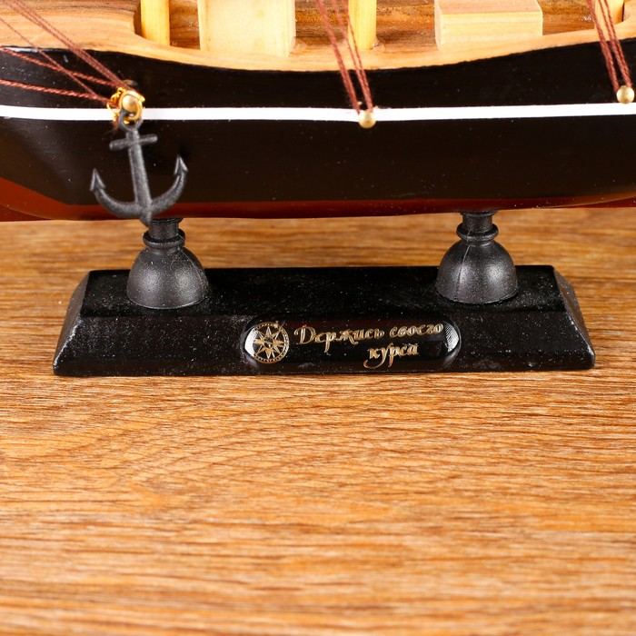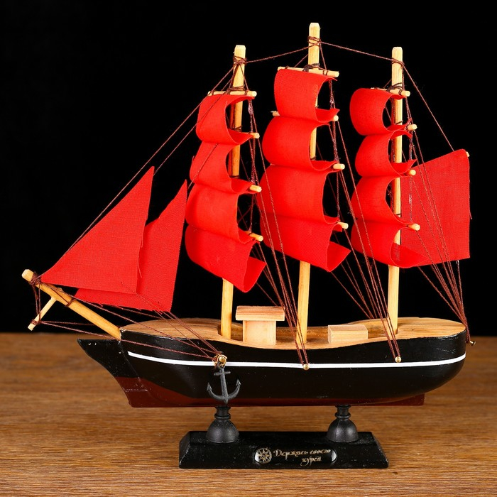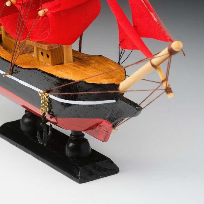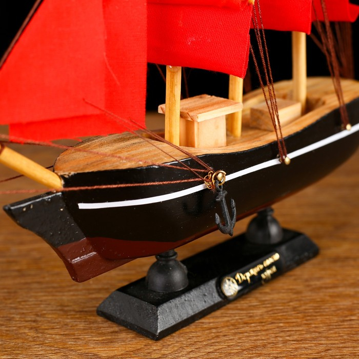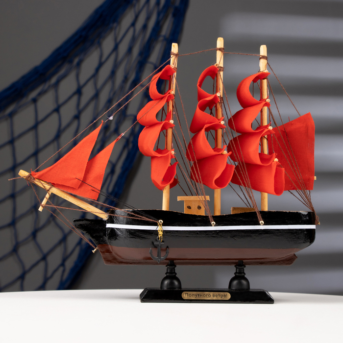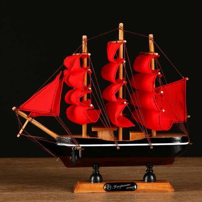Корабль сувенирный малый «Восток», борта чёрные с белой полосой, паруса алые,микс 22×5×21 см