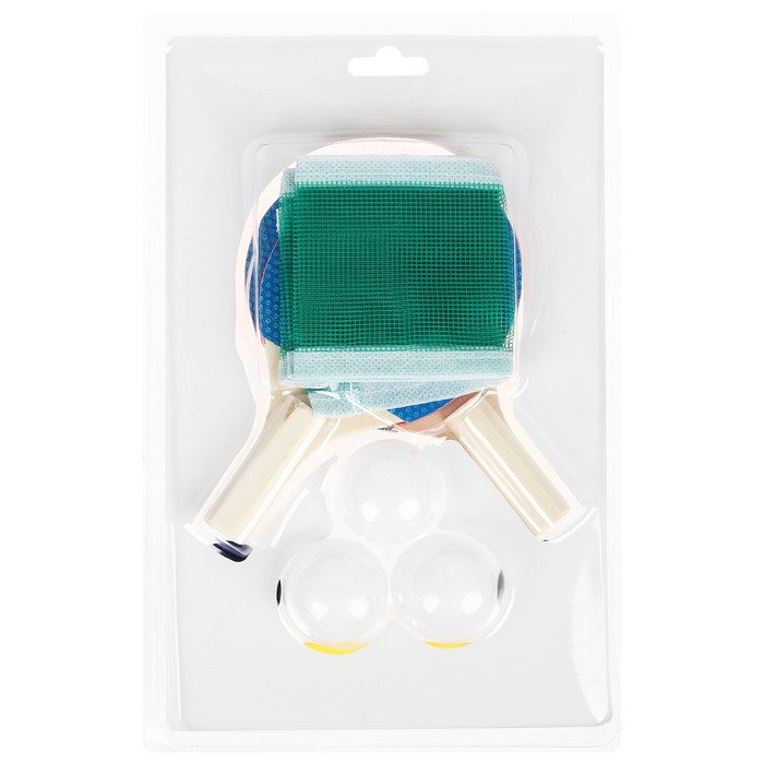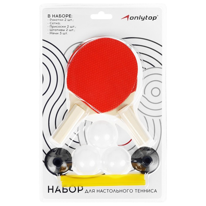 Набор для настольного тенниса детский ONLYTOP: 2 ракетки, 3 мячика, сетка, присоски 2 шт.,штатив 2 шт.