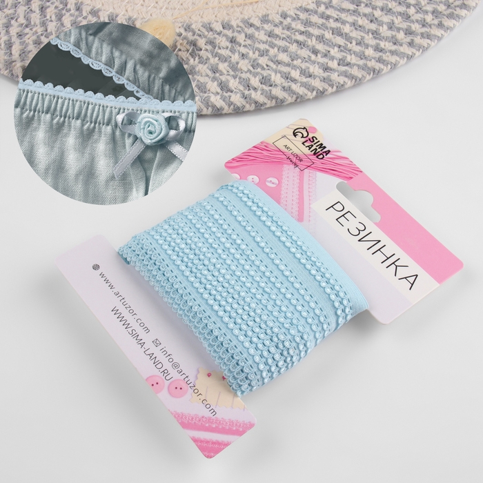 Резинка ажурная бельевая, 10 мм, 10 ± 1 м, цвет голубой