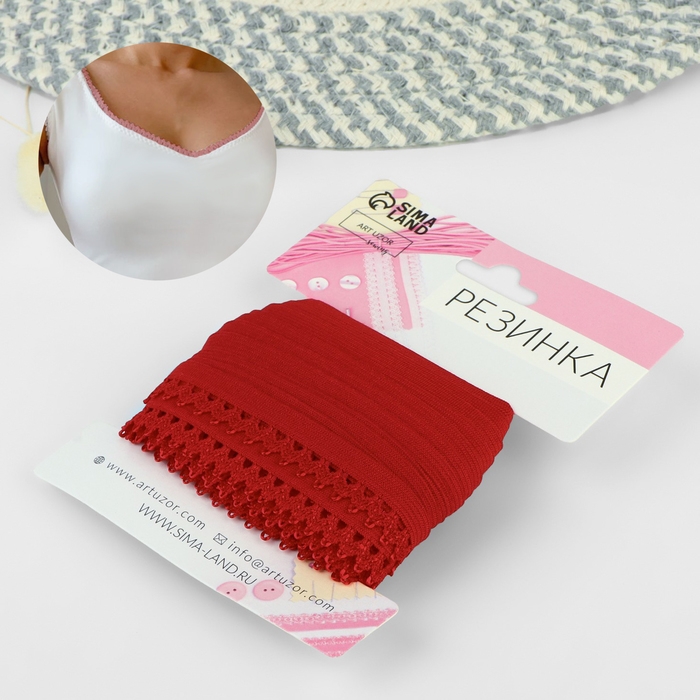 Резинка ажурная бельевая, 13 мм, 10 ± 1 м, цвет красный